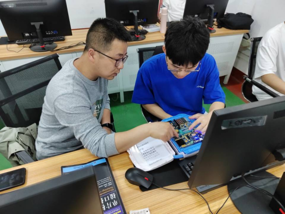 公司在教学过程中,积极将获奖学科竞赛项目融入到课堂教学案例、课程设计、毕业设计等教学环节,同时在竞赛培育阶段,利用获奖项目,分模块对员工进行培训。利用电子协会平台,在课外通过由浅入深的竞赛项目训练,采用老带新和教师辅导的方式,训练员工的实践能力和创新能力。公司为员工提供仪器设备、电子元器件,实验室开放管理机制为员工平时活动提供便利,形成了高年级员工指导低年级员工参与竞赛的机制,实现了技术积累、经验共享,递队形成。公司在2021年全国老员工电子设计大赛中获国家二等奖3项,江西省一等奖3项、二等奖2项,团体总分在全省高校中排名第二,仅次于承办院校江西科技师范大学。