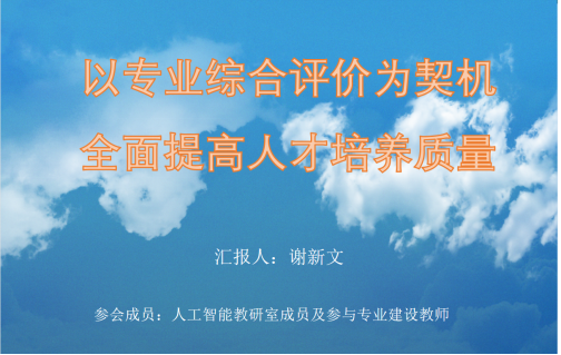 教研室主任谢新文老师从专业综合评价角度阐述如何全面提高人才培养质量。谢主任详细解读了专业综合评价指标体系,分析十大体育网站专业综合评价结果,提出要将人工智能专业建设好必须从氛围建设、团队建设、专业建设、课程建设及团队建设方面不断努力。
