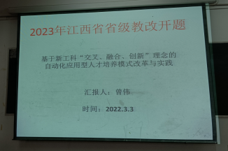 3月3日下午,公司2023年江西省省级教改立项课题开题报告会在竞知楼908教室举行。公司胡日新副经理,罗东云,蔡苗苗等老师、项目负责人曾伟老师和项目负责人刘泽良老师进行了开题汇报。