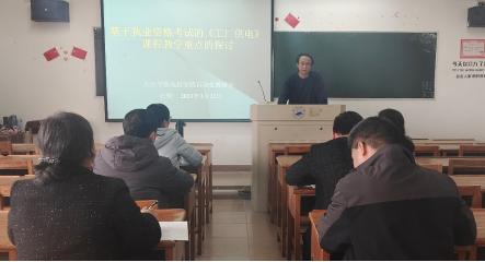 3月22日下午,自动化教研室开展了一场教学研讨活动,活动主讲人为石俊老师,题目为“基于执业资格考试的《工厂供电》课程教学重点的探讨”。自动化教研室全体老师参加了该研讨活动。
