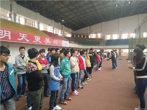 为避免学员在活动中受伤,各班班主任、辅导员及体育委员带领各班成员进行热身运动。在体育部部长翟涛学长的指导下各班同学开始分组,分别参加两人三足,颠鼓击球,拔河活动,同学们热情高涨,踊跃参赛。