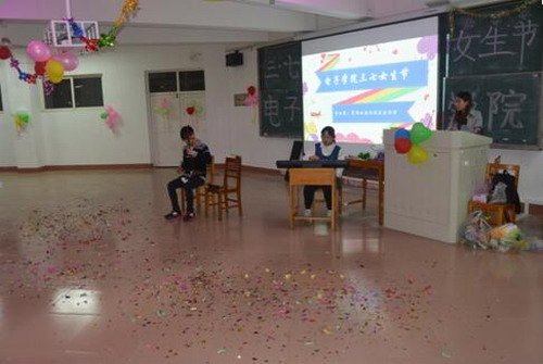 为丰富电子公司女生的校园文化生活,增强员工的凝聚力,增进同学之间的友谊,3月7日晚,以热心帮助、关爱女生为主题,电子公司女工部带领相关部门人员在竞知楼阶七教室举办“三七女生节”文艺晚会,电子公司的全体员工积极地参与到此次活动中来,观看表演并热情互动。