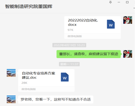 2022年4月21日,江西智能制造产业技术研究院董国辉部长应邀对自动化2022级培养方案进行意见修改。给出如下意见: