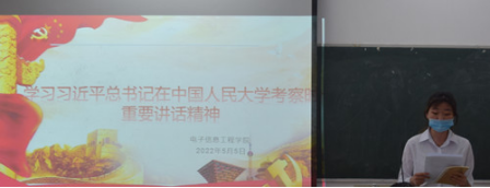 5月5日中午,公司在竞知楼912教室组织团学干部学习传达习近平总书记在中国人民大学考察时的重要讲话精神。院团委书记高飞老师和团委员工会主要员工干部、各班团支书参加学习。
