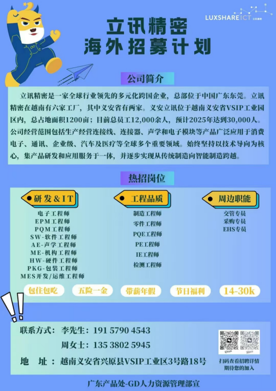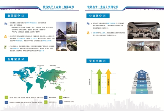 立讯精密工业股份有限公司主要生产消费电子产品(智能手机、智能可穿戴设备、混合虚拟现实设备、声学模组、无线充电模组、LCP天线、震动马达、VCM等)、汽车领域产品(汽车线束、 汽车连接器、智能座舱、智能驾驶等)以及企业通讯产品(高速互联、光模块、散热模块、电源、基站天线、基站滤波器等),提供从核心零部件、模组到系统组装的一体化智能制造解决方案。公司成立于2004年5月24日,于2010年9月15日在深圳证券交易所中小企业板成功挂牌上市,2024年荣登世界500强第488位。协讯电子为立讯精密集团子公司,公司主营消费性电子、数据线、电脑周边产品、智能智造装备,占地面积200亩,员工4500+人,2019年江西省工商联发布江西制造业民营企业排行榜,位列第31名,2022年获批江西省2019-2021年度江西工业崛起“优强企业专项奖”,2023年获批江西省工程研究中心和江西省省级专家工作站。