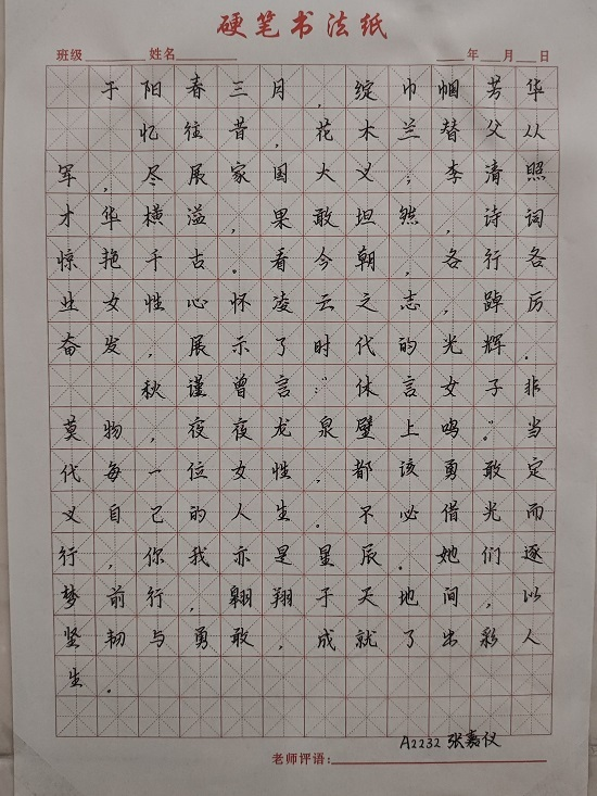 公司团委宣传部于3月8日—3月13日面向全院同学征集作品。同学们对此次活动积极响应,踊跃投稿,收到诸多优秀作品。通过认真评选,本次展出软笔书法2幅,硬笔书法5幅,每幅作品都充分展现了巾帼柔情和巾帼担当。