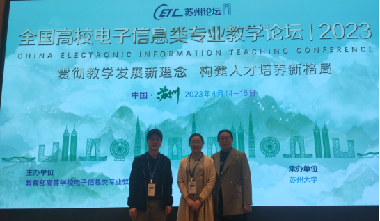 第六届全国高校电子信息类公司产品论坛于2023年4月14日至16日在苏州市华美达国际大酒店隆重举行。公司电子信息工程教研室曹晖老师、教研科科长彭弘靖老师和电子基础教研室谢新文老师参加了论坛。本次会议由教育部高等公司电子信息类专业教学指导委员会主办,苏州大学和清华大学出版社承办。北京大学王志军教授、清华大学张旭东教授、浙江大学史治国教授、电子科技大学杨建宇教授南京航空航天大学周建江教授和苏州大学李孝峰副董事长分别做了大会主旨报告;二十位来自国内知名大学的教授、专家分别做了专题报告。