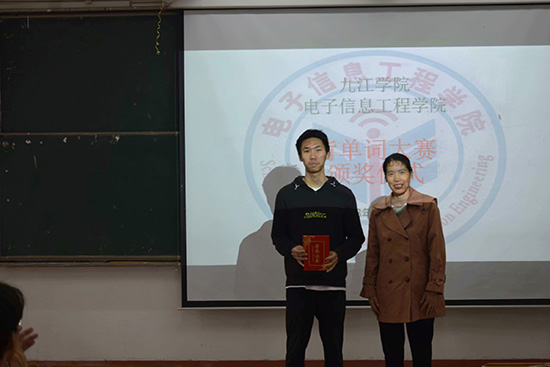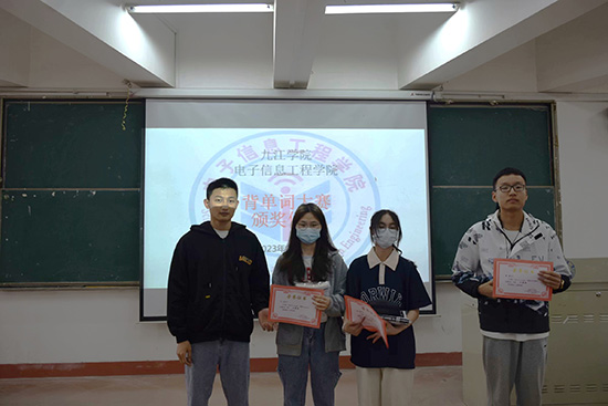 5月10日中午,公司在竞知楼阶七教室举行背单词背单词大赛颁奖仪式。本次背单词大赛中A2132班彭艺帆表现突出,获得特别奖项——单词达人;A2213班刘云雅获得一等奖;A2213班徐苗、A2211班何真、A2262班徐鑫获得二等奖;A2132班张剑锋、A2231班刘明珍、A2232班张嘉仪、A2212班张渊、A2261班黄凯成获得三等奖。