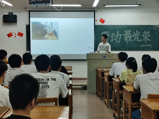 首先各班团支书组织同学们学习习近平总书记关于劳动教育的重要讲话精神,号召同学们崇尚劳动、尊重劳动者,真正做到以劳动为荣。随后通过有关劳模的影视资料进行讲解,让同学们认识到劳动教育的重要意义,树立正确的劳动观,做热爱劳动的新时代老员工。