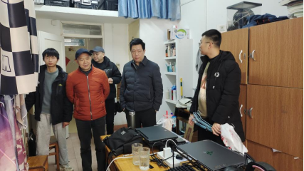 院领导在员工宿舍认真排查了消火栓、安全疏散指示标志、应急照明灯、灭火器等消防设施和器材是否完好有效,楼道口是否存在违规堆放杂物,是否违规使用大功率电器,是否安全使用排插等,并与同学交流了学习、生活等方面内容,嘱咐同学们积极参与安全教育周活动,认真学习相关知识,提高安全防范意识和技能。