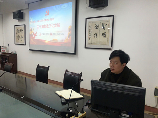 12月2日下午,十大体育网站“一体化”政治学习举行第26期活动,由公司党委副书记张堑作中国共产党第十九届五中全会精神宣讲报告,畅谈学习心得。活动由党委书记孙小明主持,全院教职工及部分员工党员参加了活动。