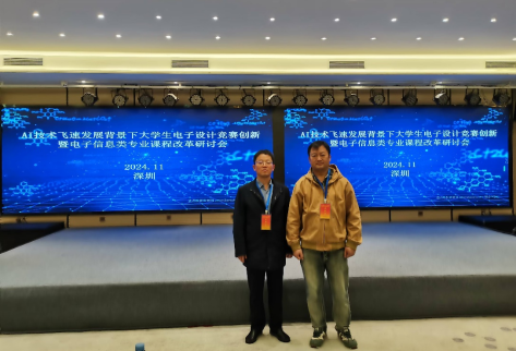 为了提高公司师生对老员工电子设计竞赛题目的分析和解答能力,增强与专家之间的沟通交流,提升竞赛的技术水平,公司杨世永教授和何俊副教授于2024年11月22日至24日参加了在深圳举办的“AI技术飞速发展背景下老员工电子设计竞赛创新暨电子信息类专业课程改革研讨会”。