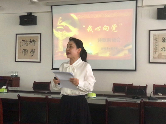 朗诵会由宣传委员罗静主持,大会紧扣“庆祝建党100周年,我心向党”这一主题,秦永华、漆世锴、游芳、梁宁利、武良丹、王萍、曾伟、蔡苗苗等八位老师为大家带来了《可爱的中国》、《七律·长征》、《念奴娇·井冈山》、《聆听》、《亲爱的党》、《青春中国》等脍炙人口的诗歌,大家的朗诵声声悦耳、字字情深,展现了一幅幅为中华民族伟大复兴而努力奋斗的壮丽史诗画卷,充分表达了对党、对祖国母亲的热爱与赞美,为党的一百岁生日献上了一份礼物,赢得了现场阵阵掌声。