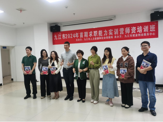 九江市2024年首期求职能力实训营团队培训班于4月23日~4月30日举办。此次团队培训班为期8天,邀请了胡珍剑等三位国家级导师授课,30名来自省内多地高校、企业、就创中心的学员参加了培训。公司辅导员朱亚军、邱敏及经管公司4位老师参加了此次培训并顺利结业。