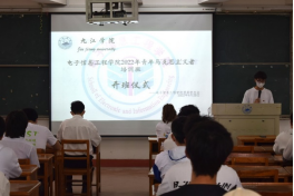 在庄严的国歌声中,开班仪式拉开帷幕。团委书记高飞老师致辞,向通过选拔的培训班全体学员表示了祝贺,详细介绍了青马工程实施的背景、内容及意义,并强调学员要做好疫情防控工作,听从组织安排,加强理论学习,坚定理想信念,发挥先锋模范作用,希望全体学员在学思践行中早日成长为新时代的青年马克思主义者!