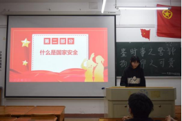 活动伊始,各班团支书首先向同学们介绍了国家安全教育日,让同学们初步了解到国家安全教育日的来源与意义。随后,在各班团支书主持下,同学们围绕“如何履行维护国家安全方面的的职责和义务”进行了讨论,观看了国家安全相关的视频,让同学们认识到了国家安全的重要性。活动结束后,同学们纷纷表示,要自觉维护国家安全。