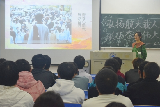 各班团支书向同学们介绍了我国载人航天事业的发展历程和为航天事业做过突出贡献的英雄前辈们,希望同学们学习他们自立自强、创新超越的精神。为让同学们切身体会载人航天事业发展的困难与艰辛,弘扬我国载人航天事业不怕困难、勇攀高峰的精神,各班团支书还带领同学们观看神舟十二号至十五号航天员授称颁奖大会视频。
