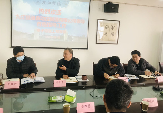 3月7日上午,九江恒通自动控制器有限公司董事长潘希勇、副总经理黄敏、行政与人力资源部部长金俊楠一行三人就校企深度合作、人才联合培养、员工实习实训、实习基地建设等方面进行深入洽谈。公司经理邓长寿、党委书记汪傧、副书记张堑、副经理胡日新、副经理杨长春等出席会议交流。