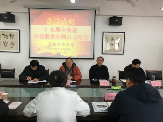 11月30日上午,广东辰奕智能科技股份有限公司总经理张小宁、研发总工程师严开云、技术总工张凯华、经理张晓文、人事专员成春燕一行五人来公司就就业招聘及双方合作事宜开展工作交流座谈会,公司经理高小英、党委书记孙小明、党委副书记张堑、员工科科长朱亚军、办公室负责人吴华杰参加座谈,会议由经理高小英主持。