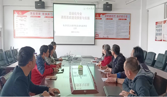 自动化专业主要是培养工程实践应用型人才,开展课程思政教育尤为重要。为加强自动化专业课程思政建设,3月15日下午,公司自动化教研室全体教师开展了课程思政建设教研活动。《电机与拖动基础》课程思政示范课程负责人,王萍老师做了“自动化专业课程思政建设探索与实施”的主题讲座。