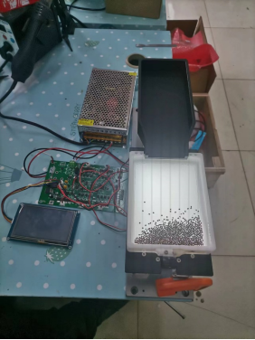 本产品是本校员工企业提出需求,电子信息产业公司牵头,在公司导师工作室,由电信教研室丁文斌老师携员工作为毕业设计作品,和企业工程师合作完成的设计。企业提供了配套的机械图纸和组件,公司员工进行了电路板设计和软件设计。相对市面上普通的振动盘,该设计采用了先进的音圈电机,利用正弦波驱动的方式,实现了柔性震动下,物料的快速定向排列。由于采用了较为先进的抗干扰措施,该振动盘能够实现强干扰工业环境中,任意热插拔下的自动恢复功能,主要指标领先同类产品,较好地实现了企业需求。