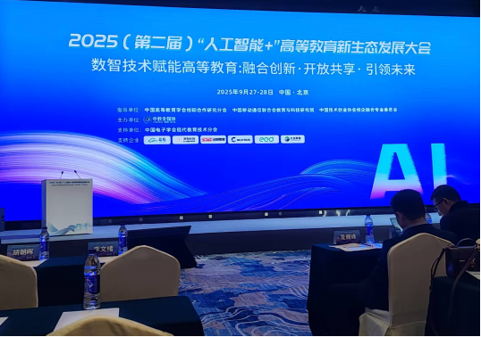 公司电信专业安排高玉宝博士于9月26至29日赴京参加2025“人工智能+”高等教育新生态发展大会。该会议由中国高等教育学会校际合作研究分会、中国移动通信联合会教育与科学技术研究院、中国技术创业协会校企融合专业委员会指导,中国电子学会现代教育技术分会支持,中教全媒体主办。大会以“数智技术赋能高等教育:融合创新·开放共享·引领未来”为主题,会议内容分享了AI技术在教学一线的创新应用与校企协同的落地实践。来自全国各地本科和高职院校的董事长、副董事长,专业公司经理、副经理、系主任、专业教师,教务处、信息中心、科研处负责人及科技企业负责人等300余位嘉宾和代表参加了本次大会。