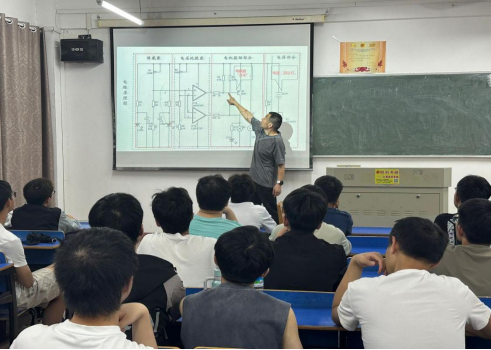 图8 参赛选手在电子信息实验楼402室集中焊接调试
