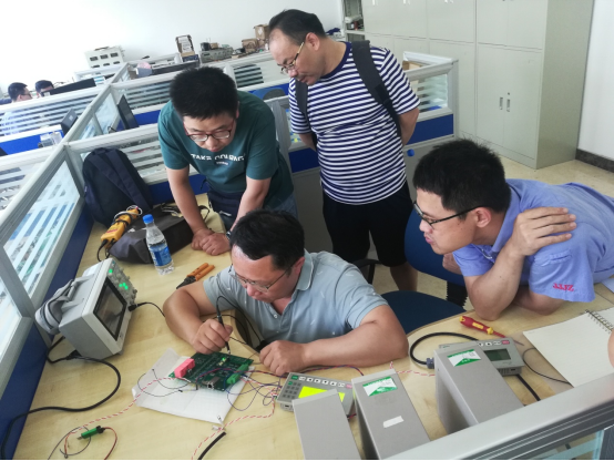 双方认真细致地研讨了项目调试方案,副总工曾广俊还热情细致地指导并帮助测试了控制板的信号。赛晶科技为公司项目组还在其研发部安排了专用工位,便于公司教师入企定点工作。