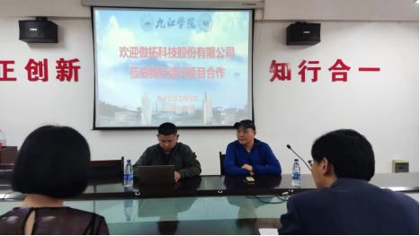 10月8日下午,傲拓科技股份有限公司销售经理董亚运一行来公司洽谈校企合作,会议在院会议室举行,会议由电子信息产业公司副经理高玉宝主持,参加会议的有自动化专业负责人蔡苗苗和产业公司助理雷雨昕。