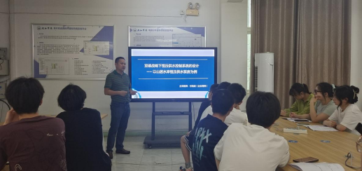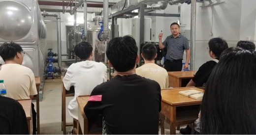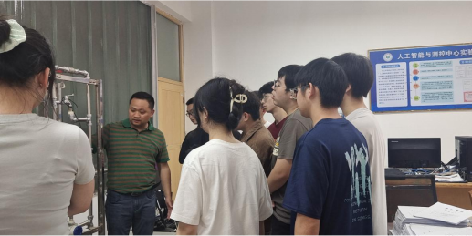 在本学期“双碳战略下恒压供水控制系统设计——以山居水岸恒压供水泵房为例”项目中,由校内教师在项目实施前先让员工完成项目基本原理及数学模型建立的学习,企业导师付培剑带领员工前往自动化专业校内实践教学基地——山居水岸恒压水泵房,在现场为员工讲解自动化技术在工业场景中的真实应用需求、行业最新资讯,让员工在真实场景中理解恒压供水项目的全流程运作。