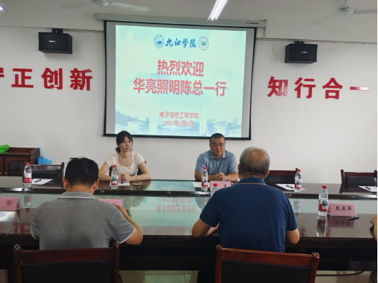 9月4日上午,华亮照明科技有限公司总经理陈勇率队来访公司,就推进产学研深度融合进行洽谈交流。公司经理邓长寿、副经理罗东云、副书记朱亚军及教师代表舒彤、刘理等一同在竞知楼904会议室热情接待了来宾。