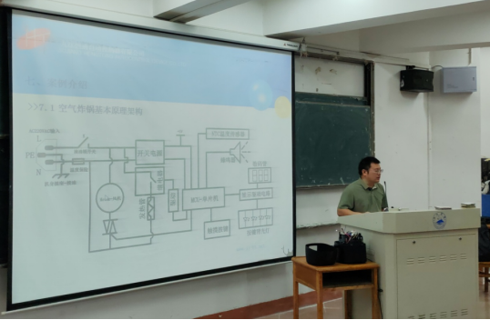 为深化单片机课程群教学改革,加强示范性实践教学基地(单片机实践教学基地)建设,电信专业于9月24日上午特邀九江恒通自动控制器有限公司家电研发团队负责人孔令坤莅临公司,在竟知楼阶七教室成功举办了题为《小家电之空气炸锅项目研发流程简介》的专题讲座。本次活动旨在将企业一线研发经验融入教学,电A2211、电A2212、电A2213班全体员工及单片机课程组谢辉程、吴华杰、漆世锴、高玉宝老师参加了讲座。