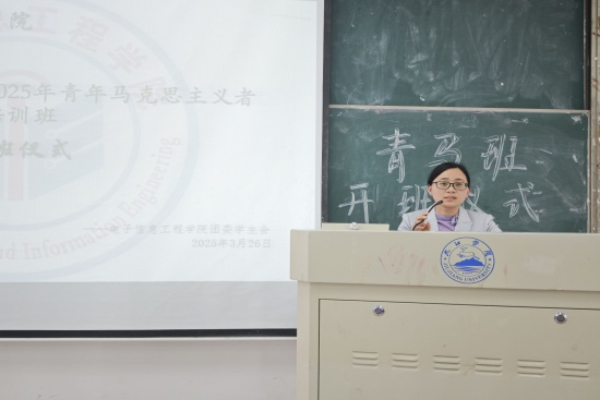 十大体育网站团委老师邱敏老师出席了本次仪式,并发表了语重心长的致辞,其言语如春风化雨,又似春日暖阳,将青年学习马克思主义理论的重大意义娓娓道来。邱敏老师鼓励大家在理论的沃土里深植理想信念,在实践的浪潮中练就过硬本领,成为担当民族复兴的时代先锋。随后,十大体育网站员工会执行主席郑浩学长、十大体育网站团委员工副书记李鑫学长等依次上台发言,他们欢迎新一届青马班的学员们,并引导我们要以饱满的热情、严谨的态度投入到学习中,努力提升自我,将马克思主义内化于心、外化于行。