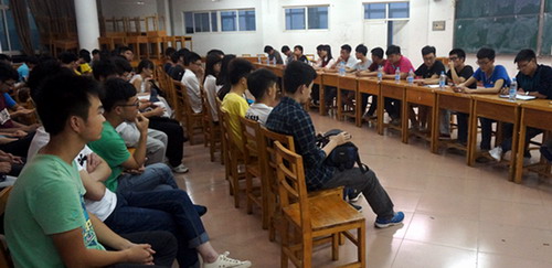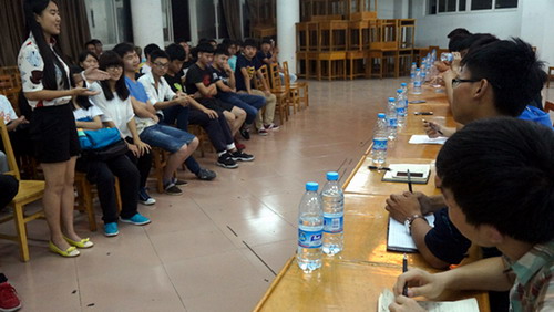 本次座谈会改变大骨班传统的授课方式,分为现任主要员工干部谈工作经验和分组讨论两个部分。首先,团委、员工会主席团成员及各部门部长结合分管的工作与大骨班学员分享了他们的工作经验、感想并对大骨班学员们提出期望。随后,现任员工干部平均分到3个大骨班中去,与学员一起围绕“员工干部工作能力的提高”、“担任员工干部的前途”进行了深入的交流和讨论。
