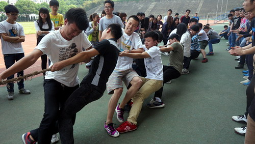 4月26日下午,公司在南区体育场开展拔河比赛,全院2014级11个班的同学参与此次活动。
