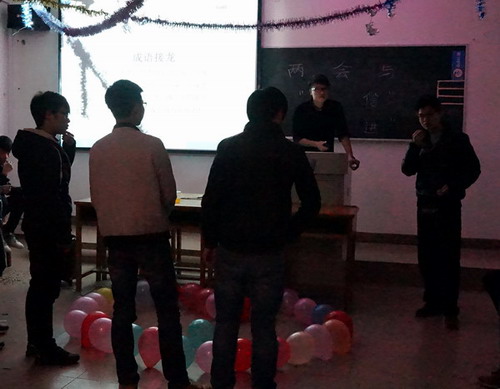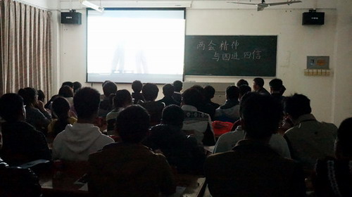 本次团日活动各班以各种形式展开,内容丰富,气氛活跃。有的班级以歌唱祖国的形式,来表达对“两会”精神的理解、崇尚,和对“两会”的热衷。也有班级同学下载好有关视频,用同学们共同分享,共同研讨,进一步了解“两会”的精神,本次活动各班的开展形式不一,各具特色,有从小游戏氛围中开怀畅谈的,也有坐下深刻探讨的,同学们纷纷用自己的方式,学习“两会精神”,理解“两会精神”,在自己的青春年华里,扬帆起航。