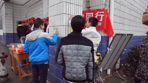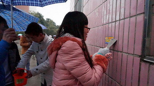员工一食堂外墙上有许多随意贴的小广告这些牛皮癣影响到了公司的美观和形象。3月5日中午,志愿者们的身影便出现在那里,他们不怕脏、不怕累,不怕冷,冒着蒙蒙细雨,顶着寒风,拿着铲子和水桶,一点一点的对墙面进行清理。铲除墙上的小广告。天气虽然寒冷,却阻挡不了志愿者们积极的热情。志愿者们的汗水,在细雨蒙蒙的校园中汇聚成了一道亮丽的风景线。在这寒冷的初春,志愿者们用自己双手温暖了这个公司,经过大家的共同努力,广告渐渐少了,墙也恢复了原来的本色。