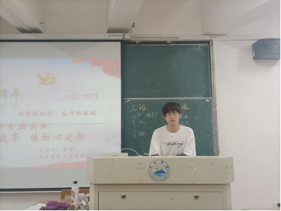 活动中,刘柯欣先以“学党史铭初心,感恩党跟党走”为主题,讲述了建党百年以来,一代代共产党人为了民族复兴和人民幸福前赴后继,以热血浇灌理想,以生命践行信仰,一寸山河一寸血,换来了今天的山河锦绣、岁月静好。其他同学也纷纷分享心中那片红色,讲述了党在革命、改革和建设等时期形成的红船精神、井冈山精神、长征精神、抗洪救灾精神、抗疫精神等,这些故事诉说着中国共产党人为中国人民谋幸福、为中华民族谋复兴的初心和使命,激励和鼓舞着青年一代前赴后继、砥砺奋进。