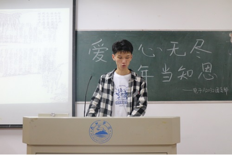公司学子的感恩之心。活动中,各团支部以ppt讲述,观看微电影《天堂午餐》、微电影《最后一公里》,聆听歌曲《听妈妈的话》、《感恩的心》,以视频、音频的方式让感恩的氛围更加浓厚。有的团支部还紧扣“感恩”的主题,让同学们分享自己的感恩故事。在活动最后,同学们纷纷写以微视频、短信等形式为父亲、母亲送上祝福,以最朴素的方式表达着感恩之念。