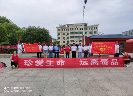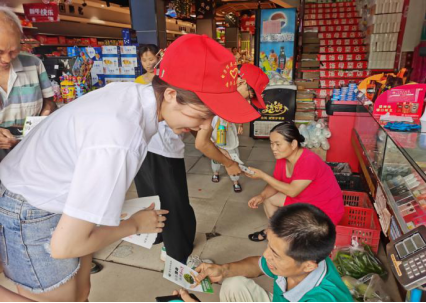 7月5日,高飞老师带领十大体育网站三下乡社会实践服务队与周溪镇党委委员段龙智副镇长、周溪镇派出所民警冯唐坤带领的志愿者一同在周溪镇政府门前广场及附近社区开展防范网络诈骗和禁毒知识宣传。