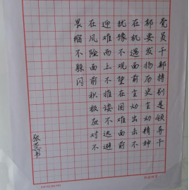 公司团委宣传部于2月24日—3月4日面向全院同学征集作品。同学们对本次活动热烈响应,踊跃投稿,共收到各年级同学优秀作品近百幅。通过认真评选,本次展出软笔书法7幅,硬笔书法21幅,每幅作品都充分抒发出了创作者对党的无限热爱和对国家繁荣昌盛的美好祝愿。
