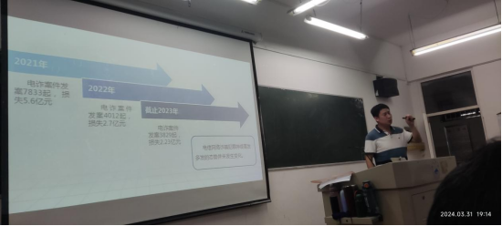 3月31日周日晚点名,根据保卫处的工作部署,公司充分利用晚点名,在全院范围,再次深入开展电信网络诈骗宣传教育。