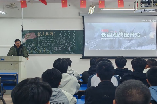 班会伊始,各班团支书通过PPT和视频,生动地再现了抗美援朝的历史背景、战役过程和英雄事迹。同学们认真观看,深入了解那段波澜壮阔的历史,感受到了志愿军战士们英勇无畏的精神风貌。随后,各班团支书通过提问等方式,让同学们更加深入地了解抗美援朝的历史知识,更加深刻的理解了那段历史的艰辛与伟大。