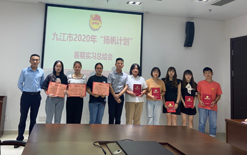 2020年8月28日下午,“扬帆计划”市直机关老员工暑期实习工作圆满落下帷幕,团市委副书记沈承峰在总结大会上首先向圆满完成“扬帆计划”实习工作的全体同学表示祝贺,也对各位同学的未来表示殷切的期望。与此同时,公司邹文彬、江欣、林峰三位优秀员工也出色地完成了为期一个月的实习工作。在实习期间,每一位优秀员工都受益匪浅。邹文彬同学表示,虽然在教育局体卫艺科实习时间并不长,但是在实习期间,他明白了,无论是任何事情,都应当竭尽全力去做;在工作上要互帮互助,发挥自身优势。林峰同学在九江市交通广播电视台工作了一个月后明白了,在工作与学习的过程中,不骄不躁,完善自身才能最大程度地发挥自身的优势,才能将事情办好。江欣同学在九江市工商联的经济科科长的带领下明白条理性地工作更能发挥最大效率,同时也更深刻体会到优秀的学习对生活的帮助;她表示,她会将这些习惯带入未来为人民和为国家的服务中去。