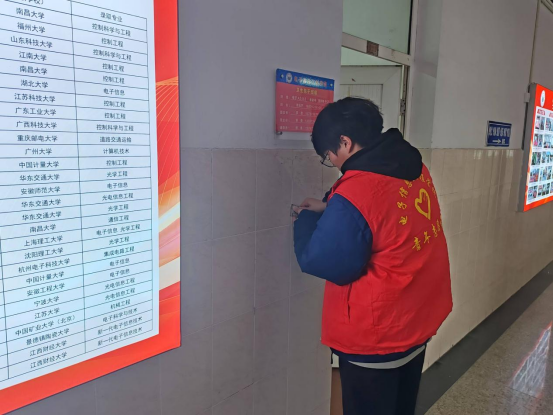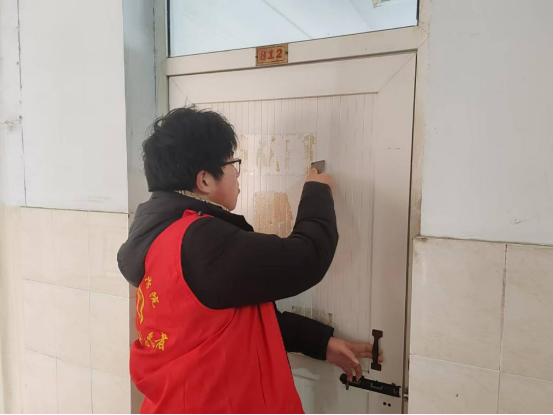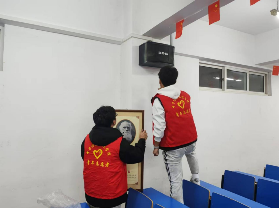 参加活动志愿者在清理过程中仔细认真、一丝不苟,逐间教室清理门上、门边、内外墙面的小广告、胶水胶带旧痕迹、过期宣传海报等,彻底清理了沉积多年的广告及其黏合剂痕迹,并把安装教室音箱时拿下来的宣传字画重新装上,教室环境焕然一新,令人舒心悦意。